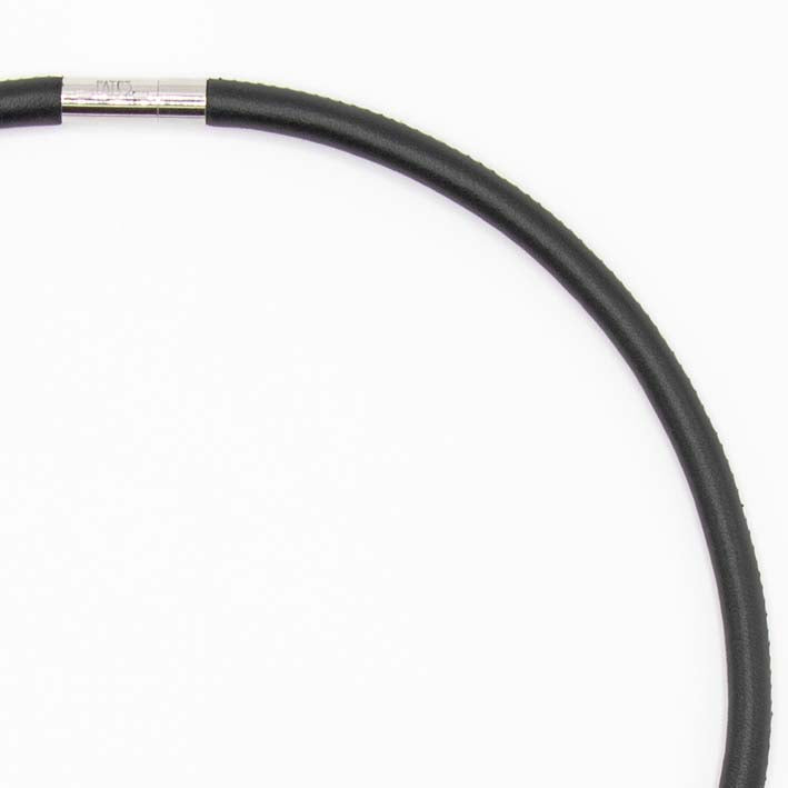 De leren ketting sluit met een magnetisch slot, waardoor hij makkelijk open en dicht gaat.