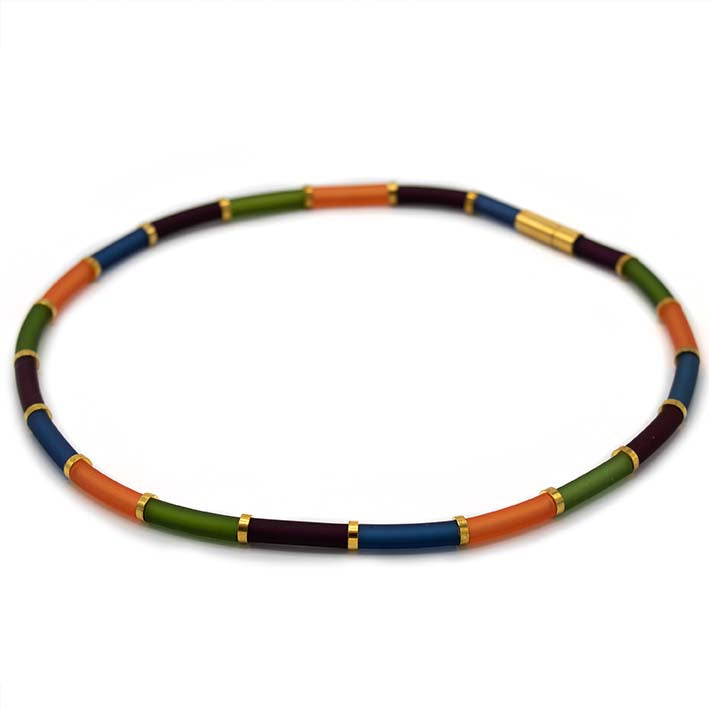 Het materiaal is aangenaam licht in gewicht en daardoor heerlijk te dragen. Deze ketting sluit met een magnetisch slot en gaat dus makkelijk open en dicht.