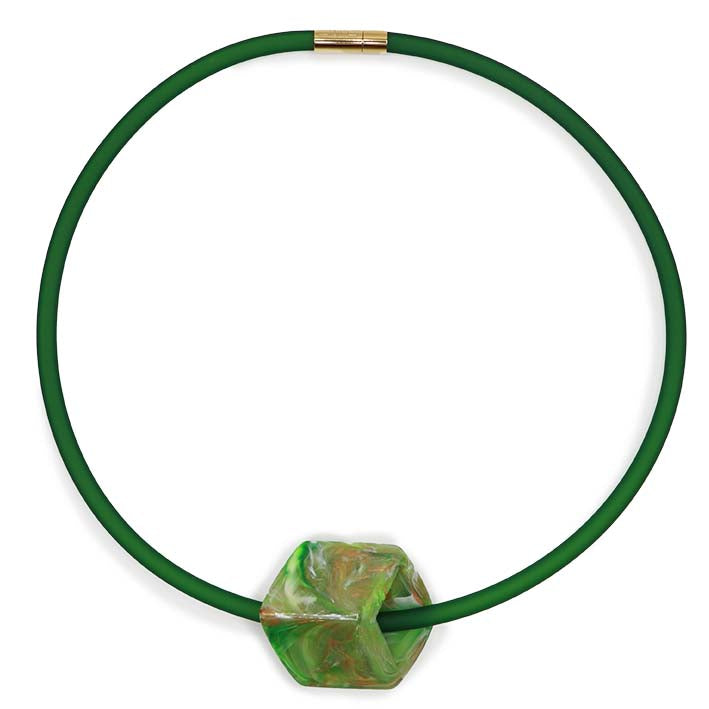 De ketting bestaat uit een verwisselbare groene Cube. Je wisselt ze eenvoudig met meer dan 70 andere kleuren uit de collectie. Zo creëer je steeds een nieuwe look die past bij je outfit, seizoen of stemming.