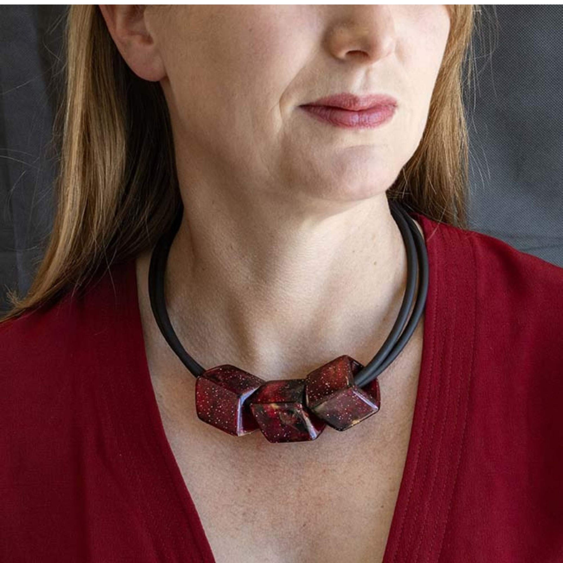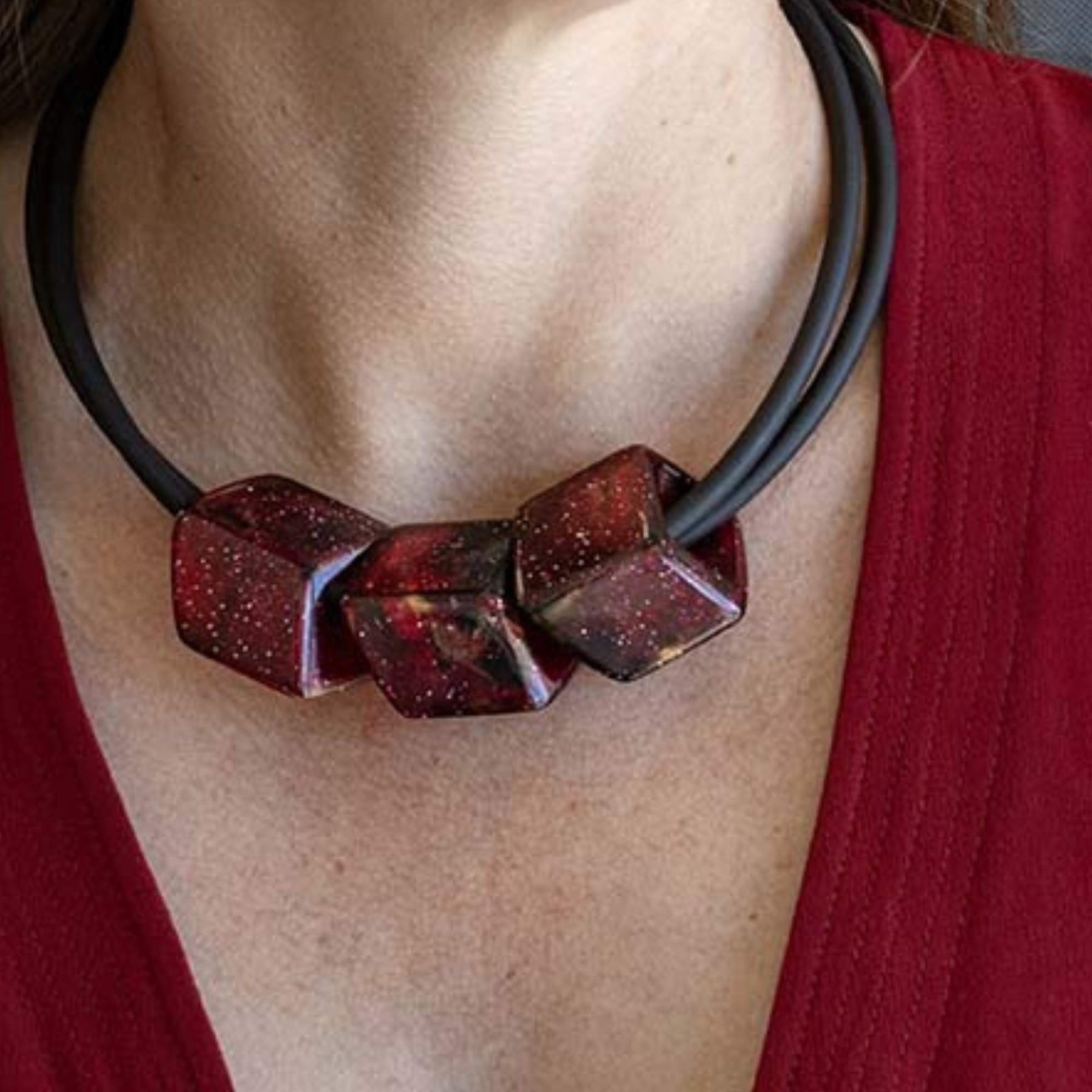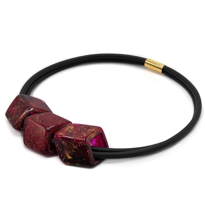 Handgemaakte sieraden van rubber en resin met verwisselbare Cubes.