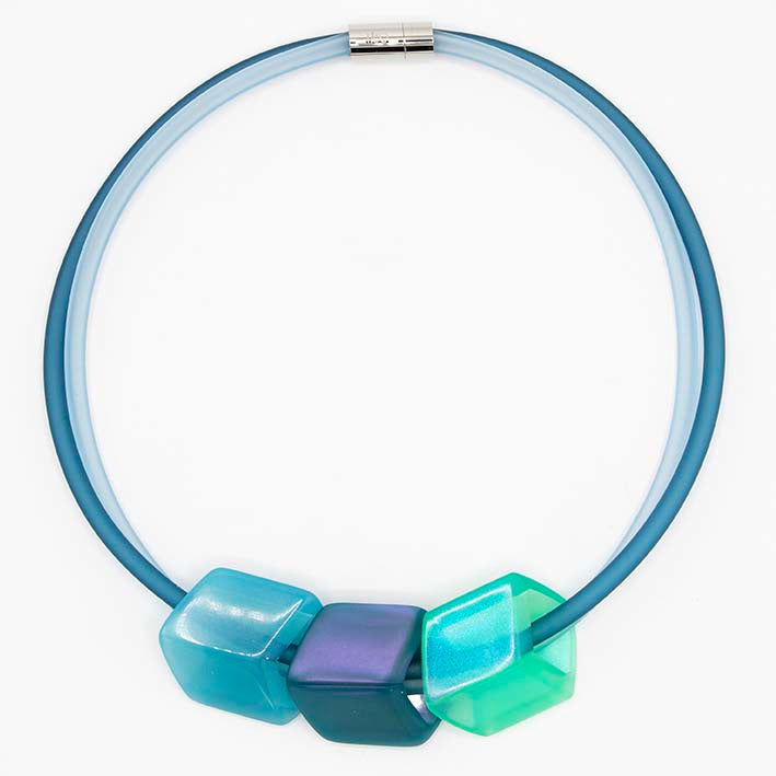 Exclusieve petrol ketting van rubber met  3 Cubes  - AquaViva
