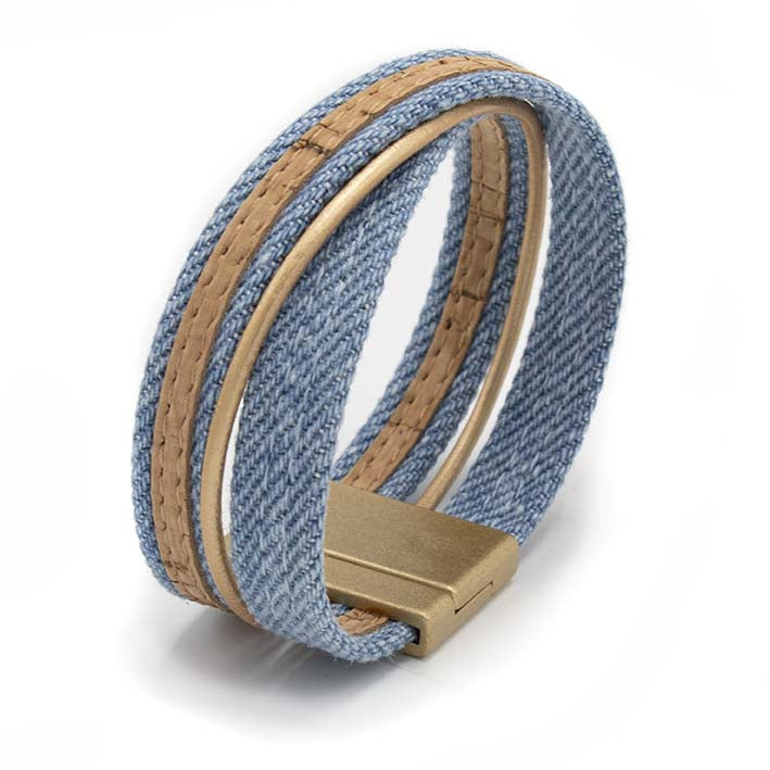 Armband van licht blauwe jeans en kurk, 25 mm
