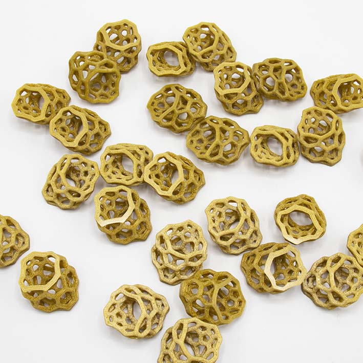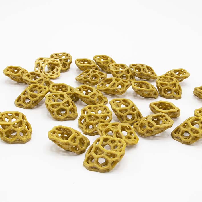 Deze 3D geprinte Cubes zijn gemaakt van 100% Bioplastic. Deze kunststof is gemaakt van maïs en suikerriet en volledig biologisch afbreekbaar. Een voordeel is dat ze erg licht in gewicht zijn.