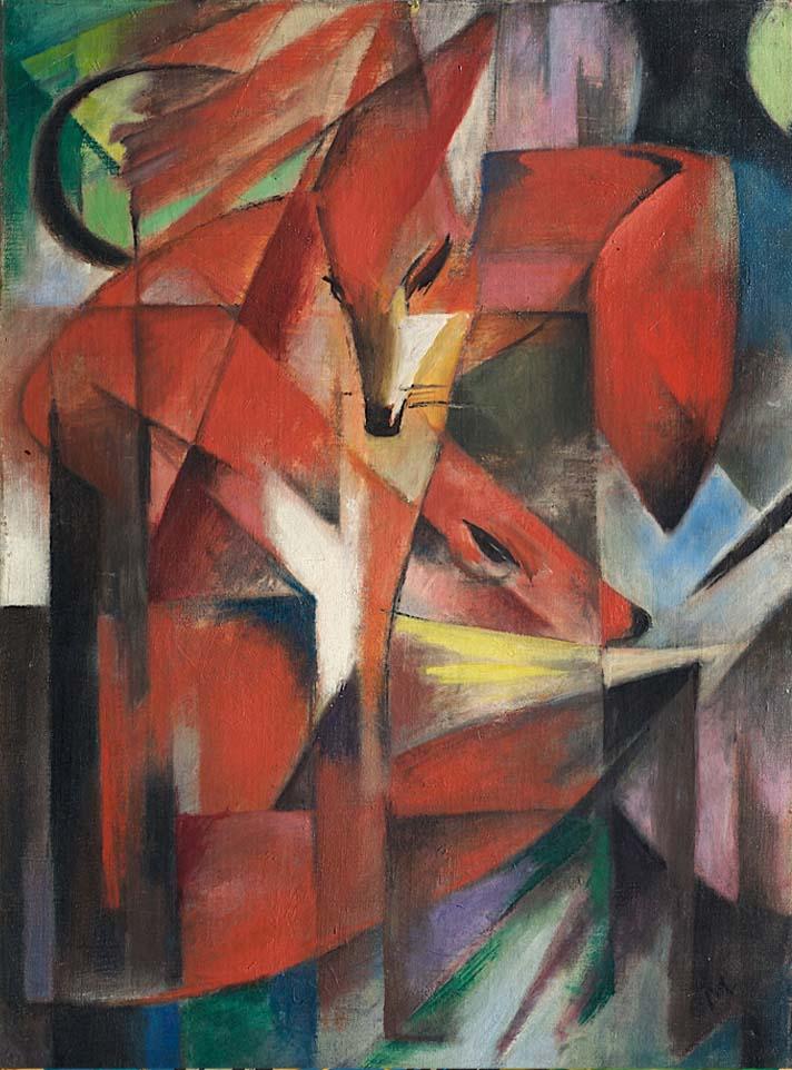 Een armband met een hoge WOW factor. Van delen uit het prachtige schilderij van de Duitse schilder Franz Marc (1880 - 1916) , heeft Marloes een adembenemende compositie gemaakt voor op de armband. Frans Marc staat bekend om zijn schilderijen van dieren waarin hij vooral het innerlijk van de dieren laat zien. De stijl van deze schilder is het expressionisme.