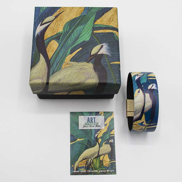 Een armband met een hoge WOW factor. Deze elegante kraanvogels staan op een schilderij van de Amerikaanse kunstschilderes Jessie Arms Botke (1883 - 1971).