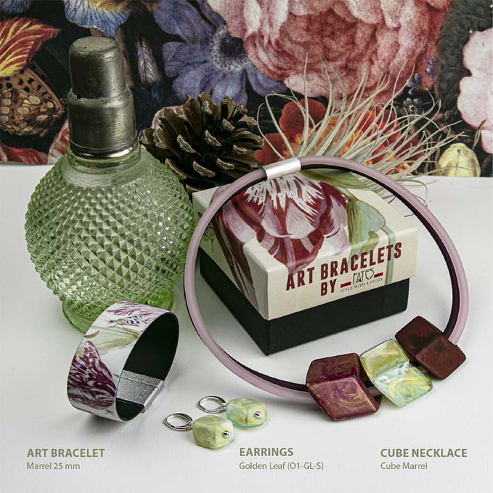 De wereldberoemde, grillig gevormde tulp tulp van de 17e eeuwse meester Jacob Marrel nu op prachtige, moderne armbanden geprint.