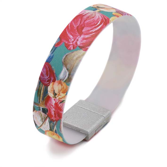 Wat zou de lente zijn zonder tulpen. Van deze vrolijk gekleurde armband word je echt blij. Door z'n bonte kleurenpracht past deze armband bij elke outfit.