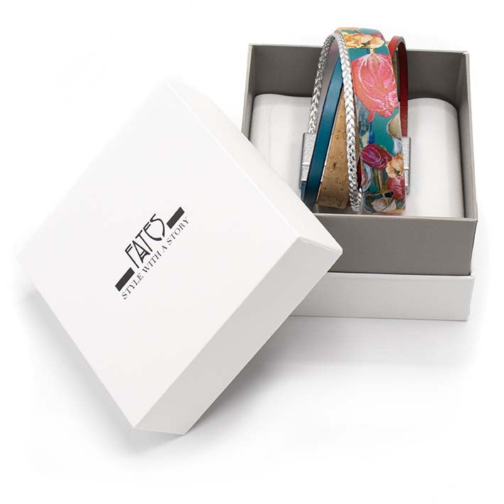 Gemaakt van geprint rubber en leer. Deze armband hebben we ook in 15 mm breed en kun je combineren met de Cube Tulips.
