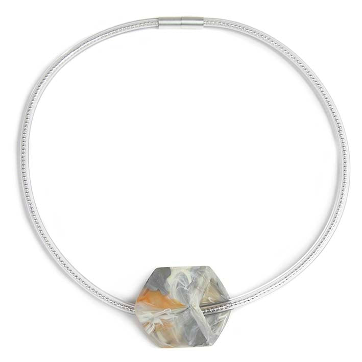 De transparantie rubberen ketting hebben we gevuld met kleine zilveren balletjes, dit geeft een speels en chique effect.