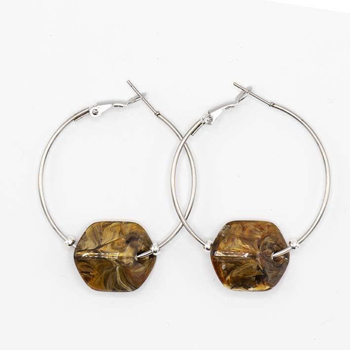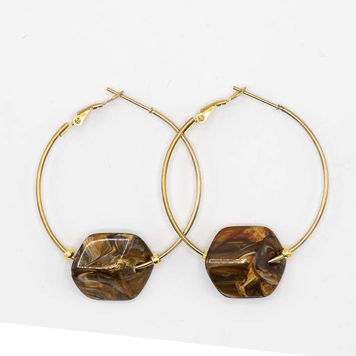 Hoop oorbellen met verwisselbare Cubes Tiger eye