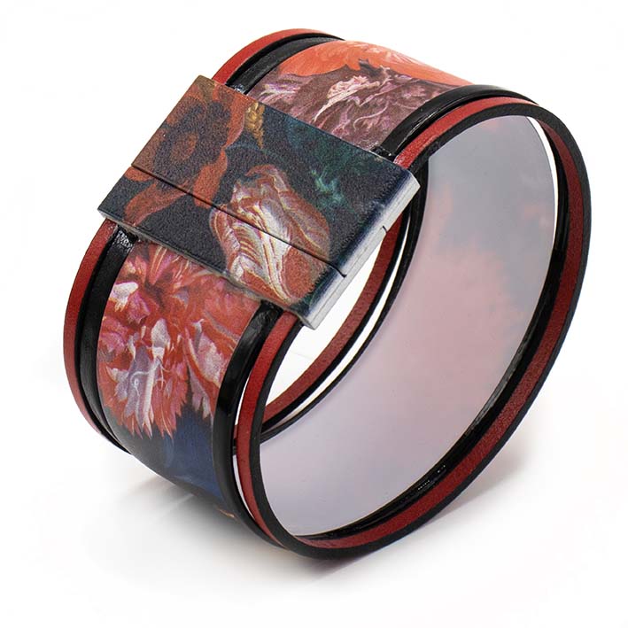 Deze armband van Jan Davidsz. de Heem hebben we "ingelijst" met kleine bandjes echt leer.