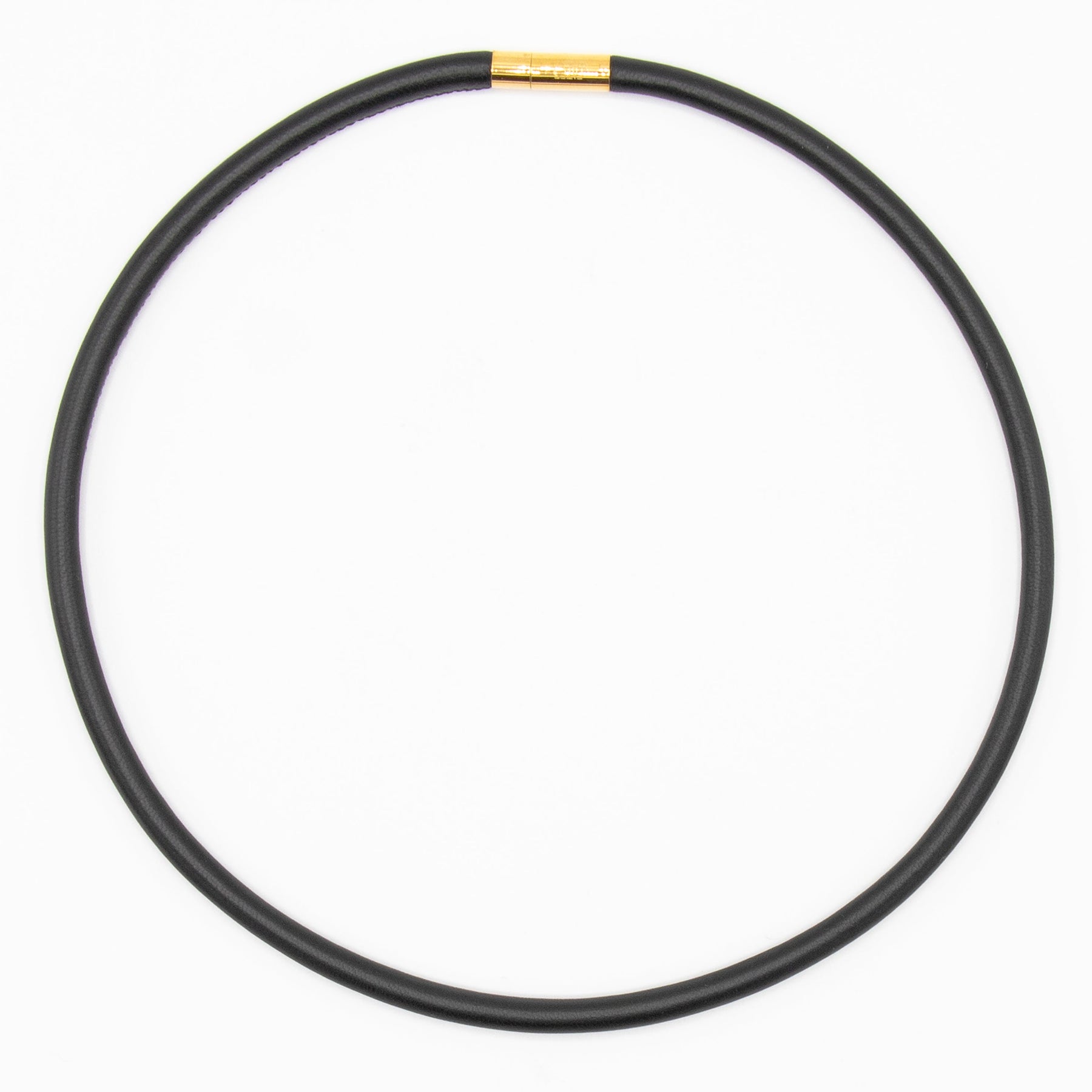 De leren ketting sluit met een magnetisch slot, waardoor hij makkelijk open en dicht gaat.