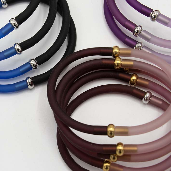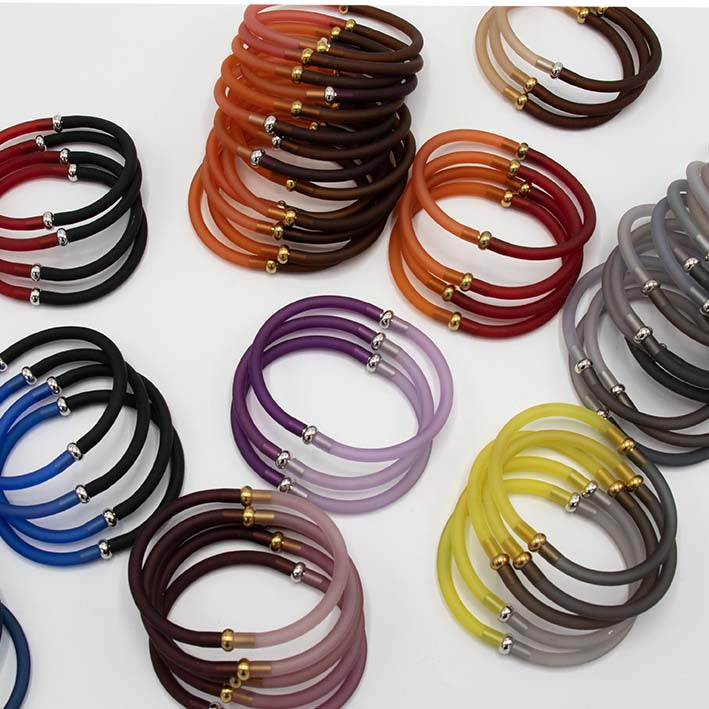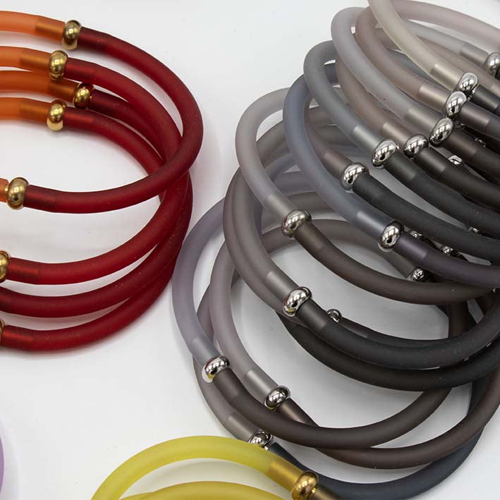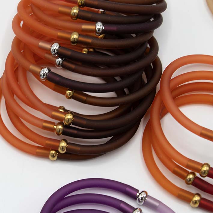 Ook zijn ze een kleinere maat. Ze zijn 20 cm. Dus 1 cm korter dan de standaard rubberen armbanden die we maken.