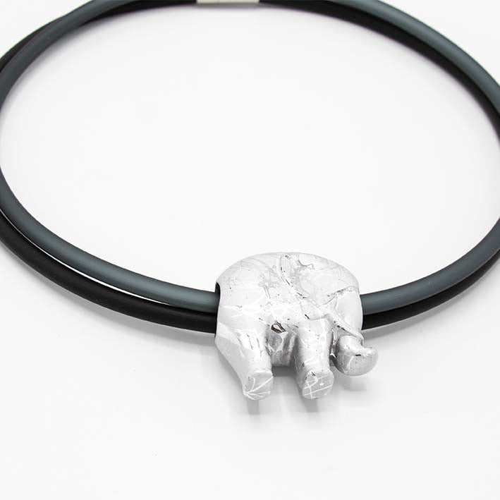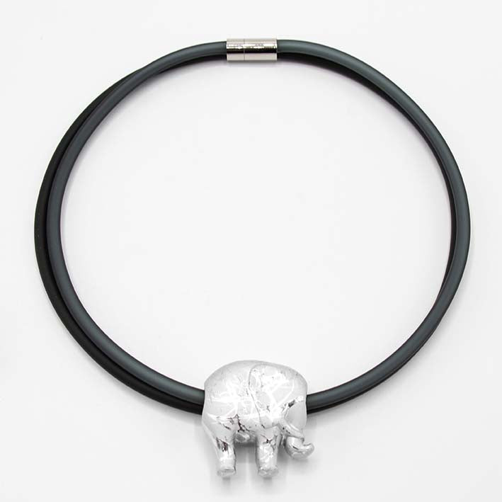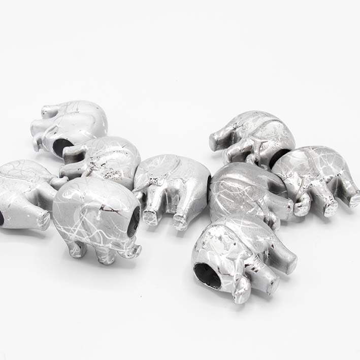 Leuk en fun. Een zilveren olifant van kunsthars.