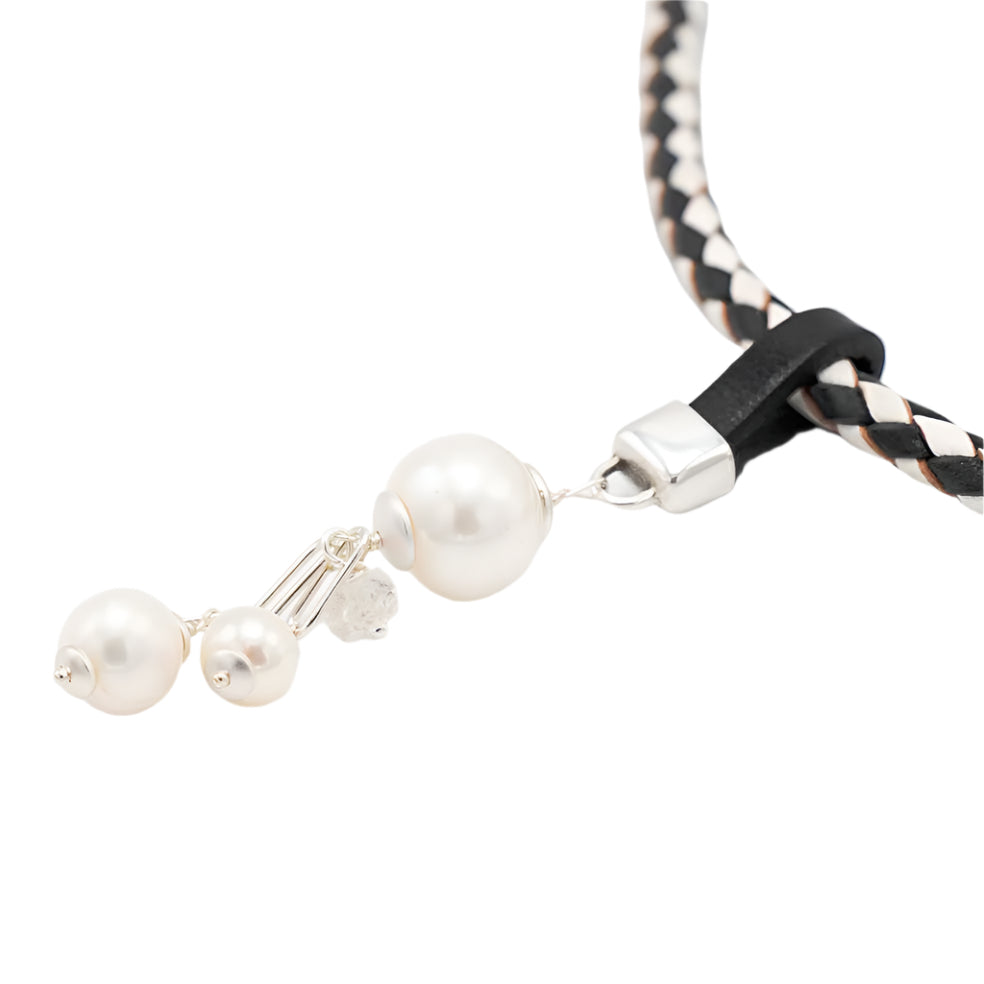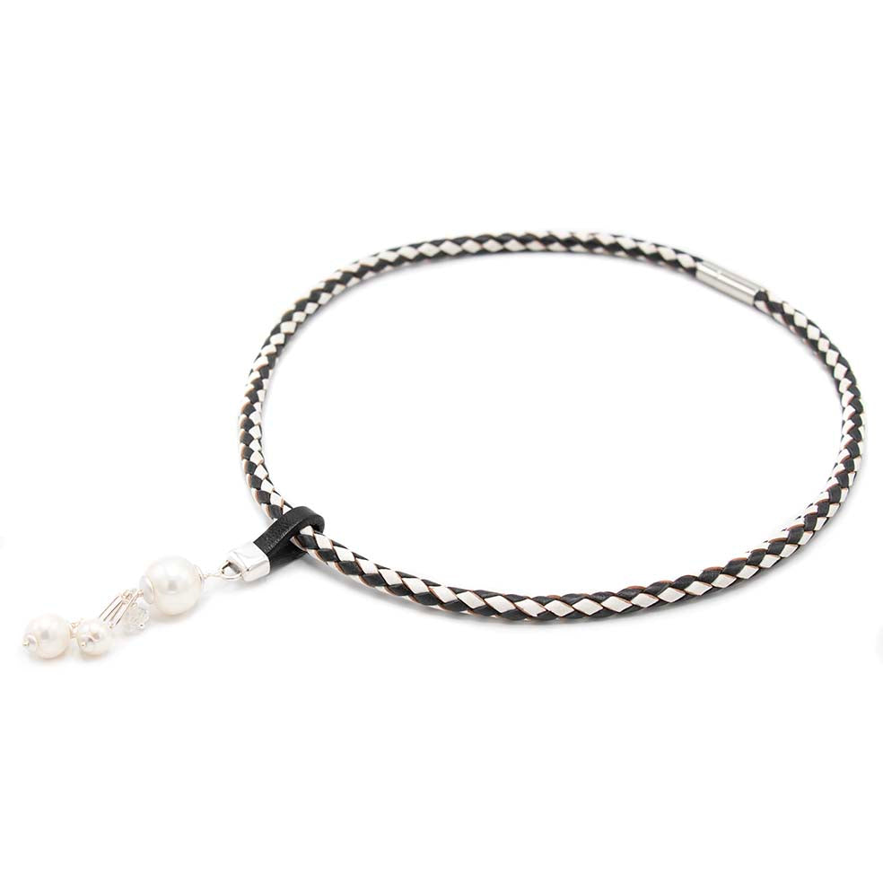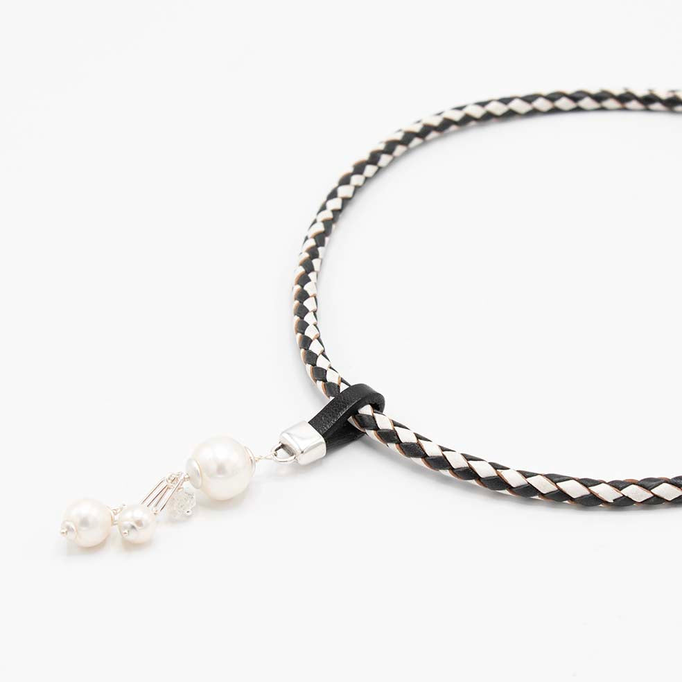 Kies de hanger los of match deze hanger met de gevlochten zwart/witte leren ketting.