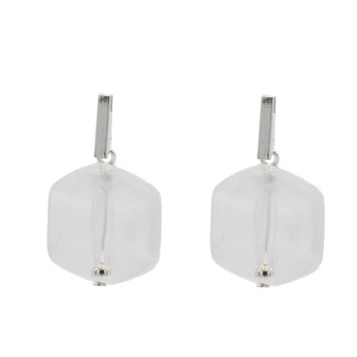 Oorbellen met  1 Cube Wit sparkling white
