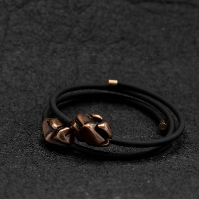 Deze armband is gemaakt van rubber en afgewerkt met rose gold plated stainless steel.